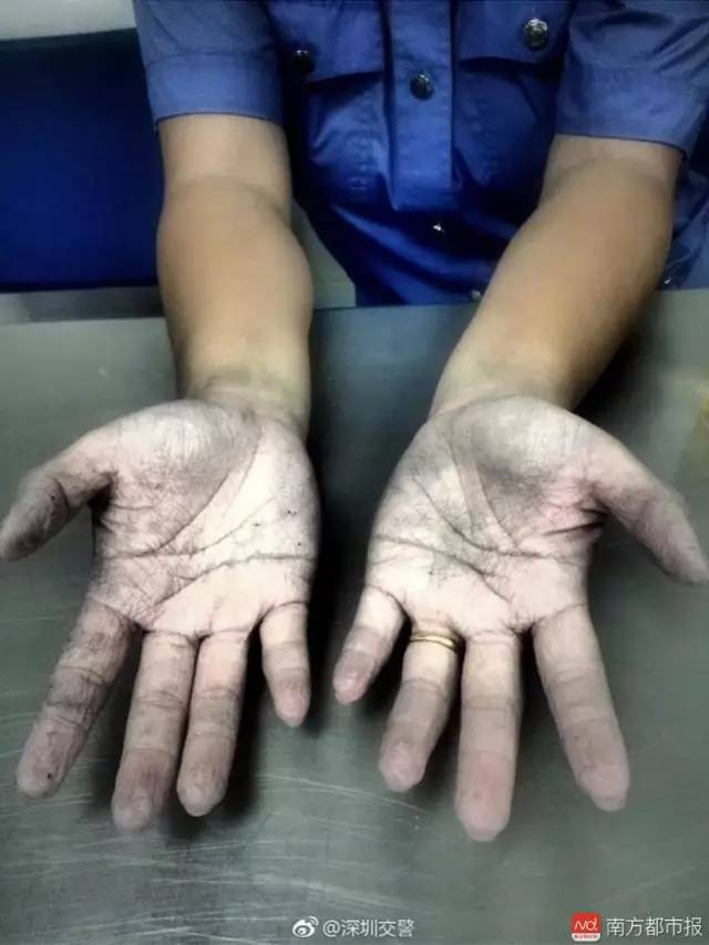 昨日下午@深圳交警 微博发布了一张照片,并配文称,这是铁骑队员被水浸泡了一上午的双手。他们戴着手套,在台风中紧张工作了一上午。