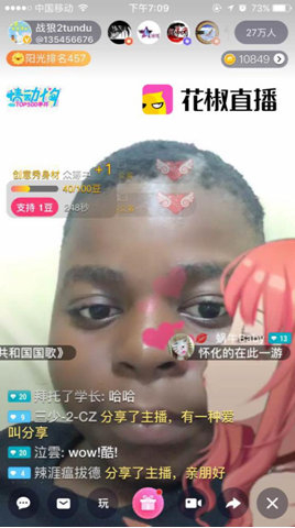 肯尼迪的花椒首秀引来大量网友围观,不久前,吴京以及于谦等多位《战狼2》的主创已经在花椒直播平台进行过独家直播,吴京还在直播中大秀飞行技术。自去年推出“明星战略”以来,花椒直播已经吸引了包括范冰冰、张继科、吴亦凡在内的上千位明星进行直播,成为明星以及影视作品重要宣发阵地,同时也带来了众多优质直播内容,而这也是花椒直播不断开拓多元化直播内容,打造“一站式”直播平台的重要组成部分。