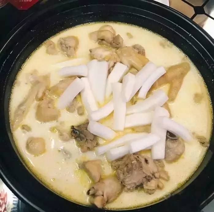 奶白色的汤,上面飘着一点鸡煮出来的油光,