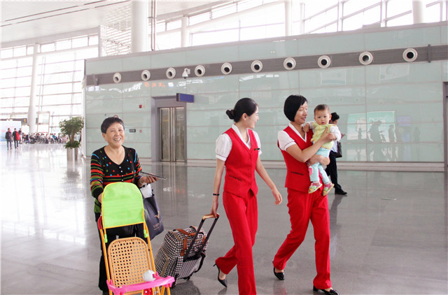 96777客服中心设立了投诉专席,及时记录并反馈旅客的意见建议;免费提供液体分装瓶、行李锁等贴心小物件;为带婴幼儿的旅客准备了婴儿车;为行动不便的旅客提供轮椅陪护服务;为老弱病残孕等特殊旅客开通“爱心通道”;兼顾责任与效率,开通了军人优先安检通道、携带人体器官绿色通道、女性安检通道和无行李安检通道。航站楼内的“雷锋号”电瓶车,全天候免费接送有需要的旅客;“红马甲”志愿者为旅客提供咨询、引导和帮助。