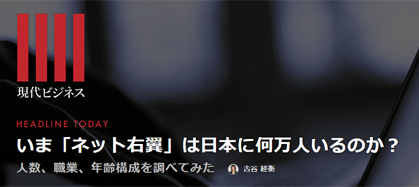 日本现代商业网站指出,了解了日本网络右翼的大致数量,我们就能明白网络右翼是不能左右日本社会舆论的。因为这只是一小撮人的自我狂欢。