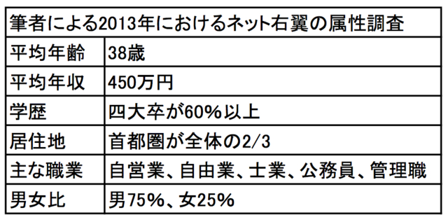 从数据来看,日本网络右翼的社会地位不是底层人,而是“生活在大都市的中年中产阶级”。