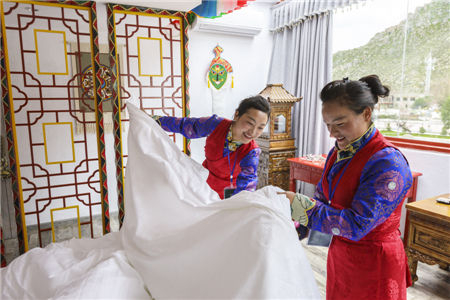 在堆龙德庆区波玛村“德吉藏家”,民宿的主人扎西卓玛也有一个账本:“自住房以外的房间用于民宿出租,旺季一个月至少能增收2000元左右。”来自波玛村的民宿服务员知美曲措和次仁卓玛也算着账,她们通过精准到点扶贫项目实现就业,再通过公司培训实现自我增值,“现在一个月能收入3000元”。