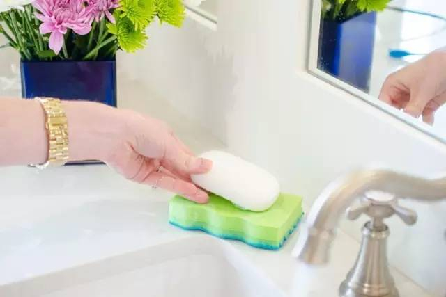 不用特地买肥皂盒,放块海绵,还能吸水,不怕肥皂一直湿漉漉了。