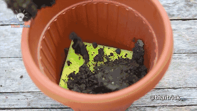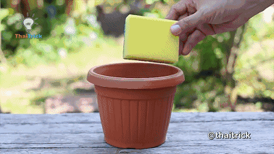家里有养花的朋友,有时候浇多了水容易烂根,你只要在花盆底放一块海绵,再放入土壤和植物。