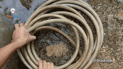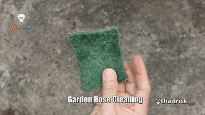 院子里的水管用久了管内会长青苔,只要撕下一层海绵,把它卷成圆柱状。