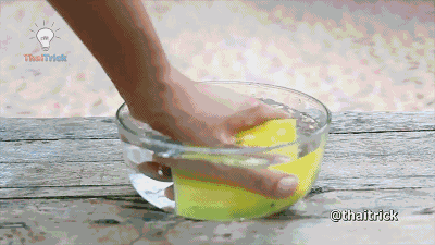 然后再滴上洗洁精,切口可以正好卡在盘子或者碗边儿,一只手捏住,一次性洗完了正反两面,是不是省水又省时间呢~