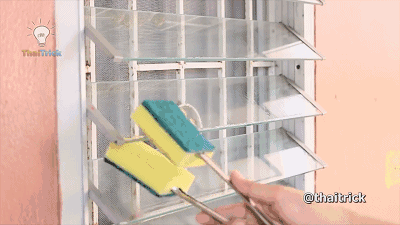 然后打湿海绵,去清理窗户或者百叶窗,堆积的灰尘可以很轻松地清理干净。