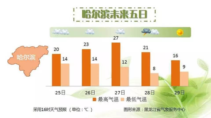 今天哈尔滨的最高气温降至20℃