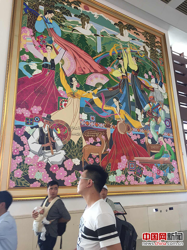 站内悬挂的巨幅民俗风情壁画。中国网记者 唐佳蕾/摄