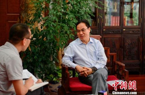 汉能控股集团董事局主席李河君在接受中新网记者专访。中新网记者 富宇 摄