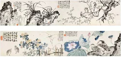 李鱓《冷艳幽香图卷》 纸本设色,纵34.4厘米,横361厘米 现藏于南京博物院