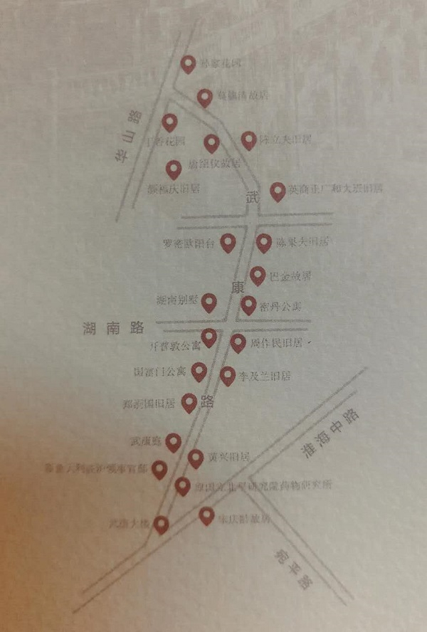 《海上遗珍:武康路》书封上的武康路名人故居指示图