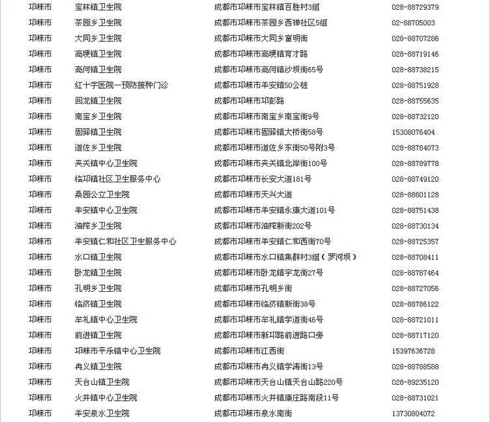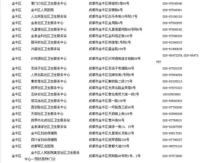 (成都市预防接种门诊名单见文末,大家可以先打电话咨询哦~)