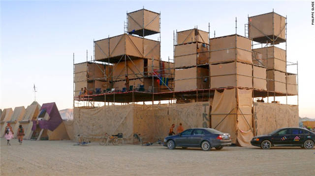 据美国有线电视新闻网8月21日报道,一年一度的美国“火人节”最早创办于1986年,在初期它只是一个小规模的聚会,随着不断的发展和壮大,这个节日近年来每次都能吸引大约7万名狂欢者参加。当涉及狂欢者在哪里睡觉的问题时,人们的创造力得以充分展示,节日上出现的千奇百怪的建筑物已经占领了各新闻板块。