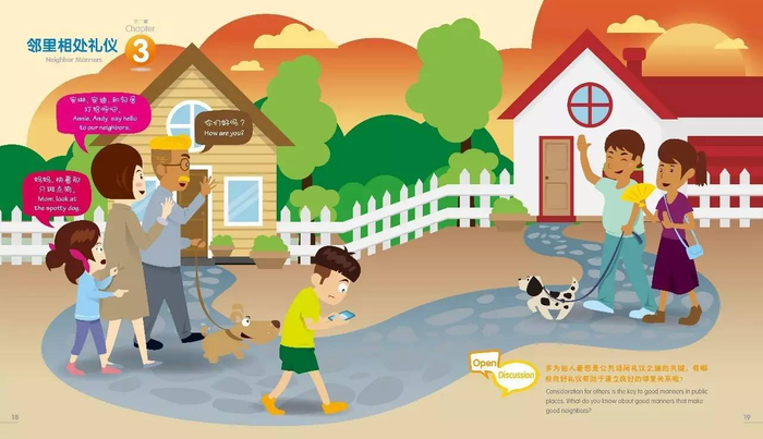 礼仪锦囊:多为他人着想是公共场所礼仪之道的关键,与邻居友好相处,要注意降低音量,尤其是在清晨、晚上或者午休时间。要得到允许才能进入邻居家,还要管好家里的宠物等。