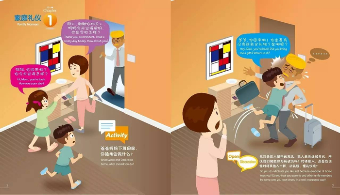 小鹏说礼:我们是家人眼中的宠儿,就能为所欲为吗?对待家人也需要讲礼貌、懂礼仪。当父母下班回到家时,可以主动询问他们“今天过得怎么样?”如果父母远出回来,不要急着要礼物,要帮忙拿下他们手上的东西。