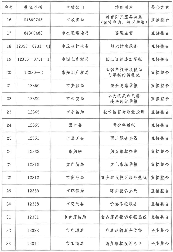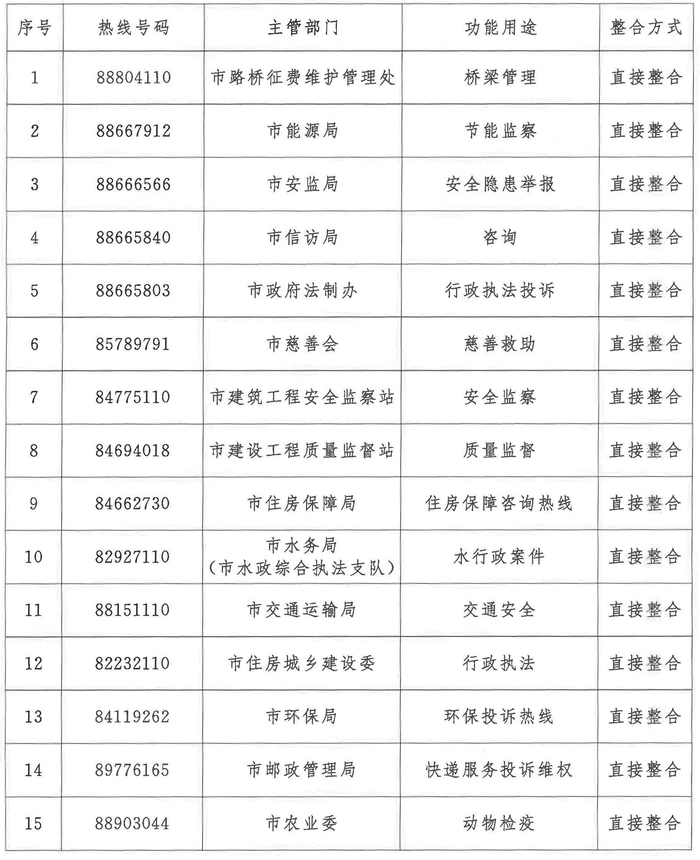 年底直接整合31条热线
