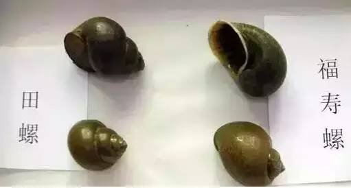 怎么分辨是田螺还是福寿螺?林老师介绍,如果从大众角度,人们可以从螺的壳口、壳顶来分辨,具体方法可以按下图所示: