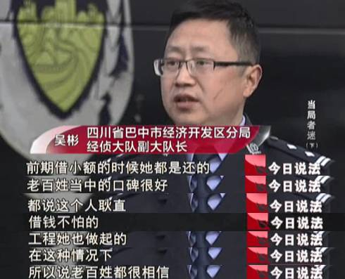 Q1: 今天我们演播室请到的嘉宾,是中国政法大学的曲新久教授,欢迎曲老师。我们今天这个案子里面的当事人很有意思,在外人眼里,那的确是个富婆,但是她吸收了别人上千万的这个资产过后人就找不着了,这个行为在法律上构成犯罪吗?
