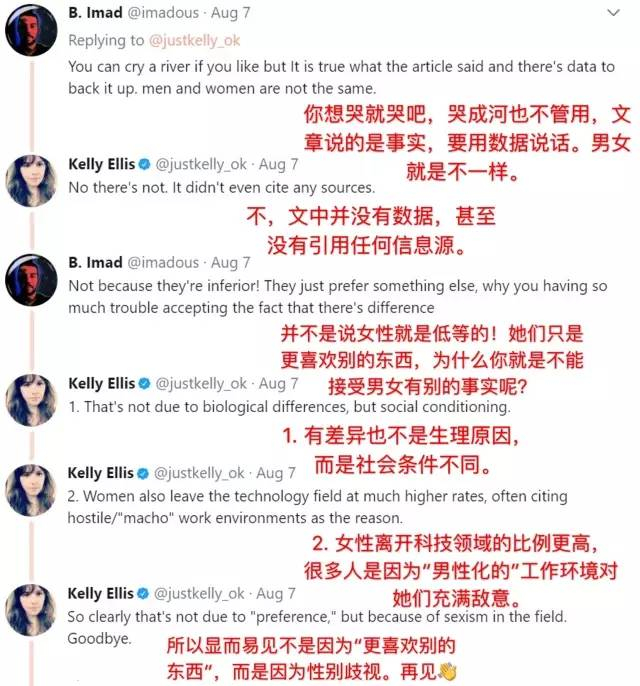 科技作家凯特·贝文不太赞同粗暴地开除,但她表示:“如果你站出来告诉公众,身边很多同事因为染色体而不适合这份工作,你就是在指责她们干得太差了。”
