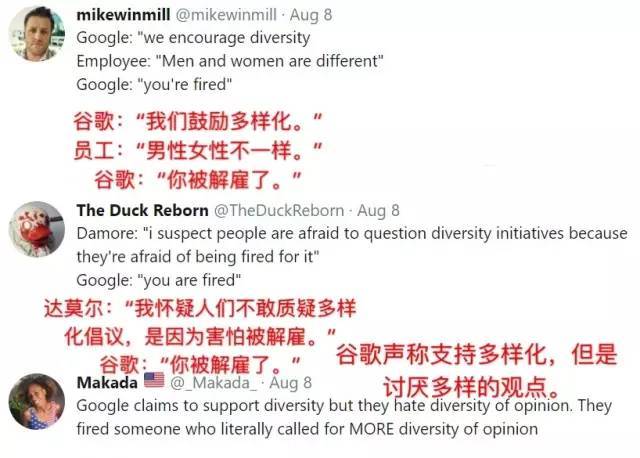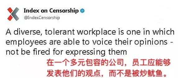 有很多网友认为自由表达观点是员工应有的权利,在推特上表示对他的支持: