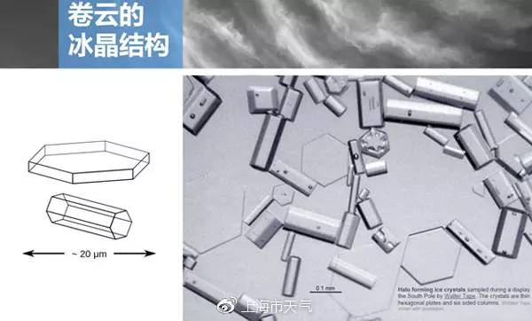“日晕”通常出现在离地面6~8千米的卷云上。卷云薄而均匀,通常由冰晶体构成。这些冰晶体折射或反射阳光就会形成“日晕”。至于“日晕”是环状的?弧状的?是光点?还是多彩的?就主要取决冰晶的形状、大小、排列方式以及光的入射角度。