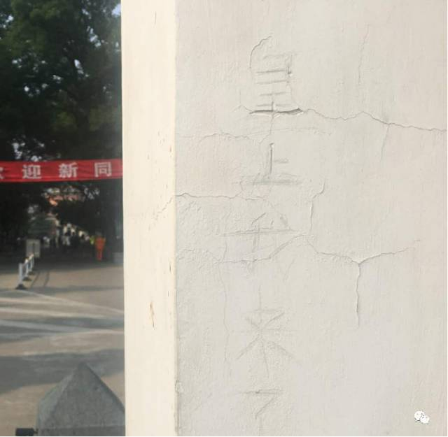 又遭毒手,“二校门”多处被刻字
