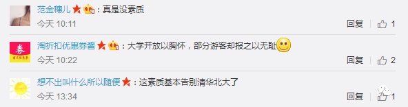 网友@启蒙新旅留言说,清华除夏令营学生之外,谢绝游客参观,高校要有高校的环境,不要搞得跟旅游景区一样。网友@爱屋及乌认为,名校环境好,学术气息浓厚,参观校园还能体验名校学生的生活,树立远大的目标,也是给自己一个激励吧。