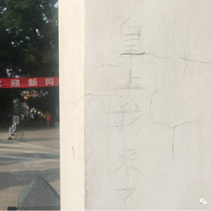 如今,“皇上我来了”,“大家辛苦了”等刻字虽已被校方用洋灰抹掉,但门框上仍留下了被处理过的印记,与周围其他砖石颜色不一。在“二校门”砖石基座上,还有多个被刻上去的名字,白色墙壁上也有黑色碳素笔留下的签名。