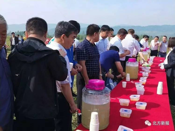 在启动仪式现场,养蜂专业户鲁树全不仅详细介绍了他养蜂的情况,还将制作成熟蜜的工艺搬到了现场,当场为大家制作蜂蜜,供大家品尝。