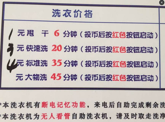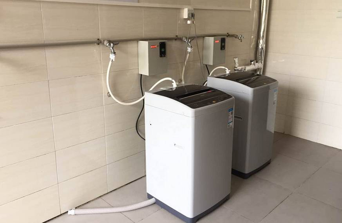 每层楼都有两台投币式洗衣机。