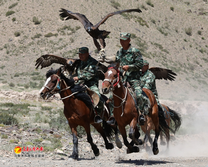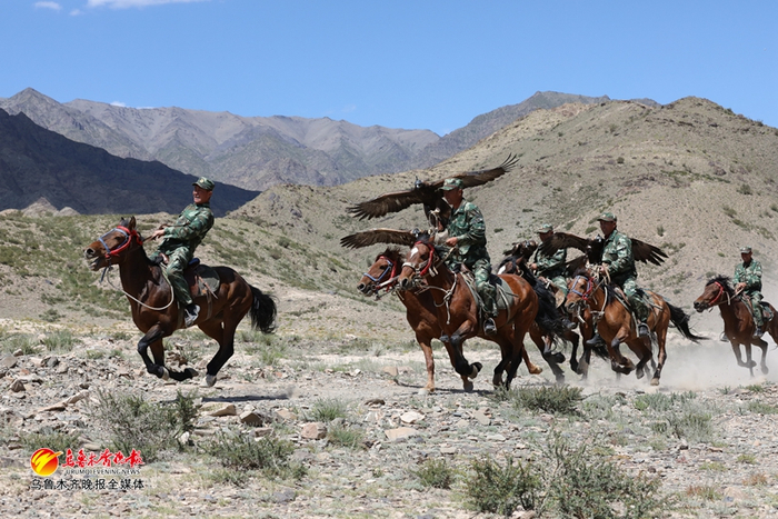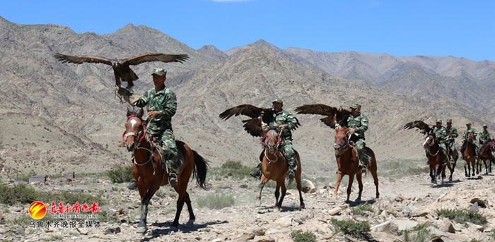 8月22日,哈拉奇边防派出所组织所辖护边员分队入住护边员执勤点,定时开展边境巡逻,有些护边员巡逻时会带上自家饲养的猎鹰。