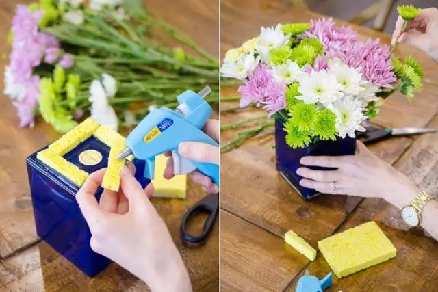 家里花瓶之类的器皿,也可以用同样的方法在底部粘上一层海绵,可以起到一个保护作用。