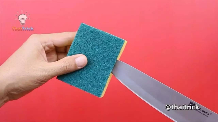玻璃窗户、百叶窗一层一层擦起来很麻烦,同样可以利用海绵来帮忙!用小刀在海绵的侧端开个口子。