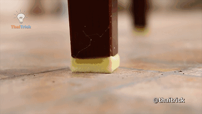 家里的凳子脚椅子脚容易打滑,拖动的时候容易有刺耳的声音不说,还容易刮坏地板。这时候,剪几块小方块海绵下来。