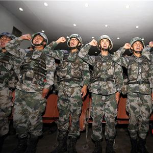 ▲“跨越-2017·朱日和”演习誓师大会上指战员宣誓。(解放军报)