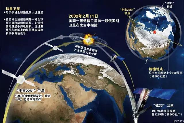 △2009年,一颗废弃的俄罗斯卫星与美国商业卫星相撞就制造出了2000多个碎片。(图/视觉中国)
