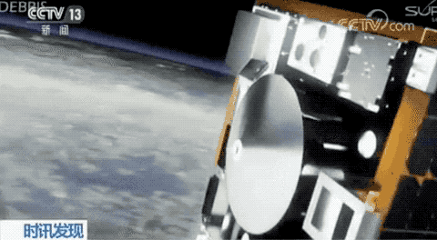 卫星发射出一块太空垃圾,再发射鱼叉将其击中拖回。