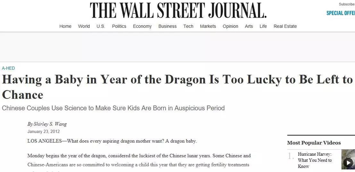 美国《新闻周刊》也曾在2012年元月报道,由于预期龙年将迎来生育高峰,北京市的月嫂价格上涨了一倍,一些医院的妇产科病床也被预定到了2012年8月份。
