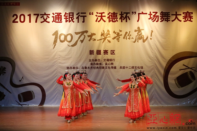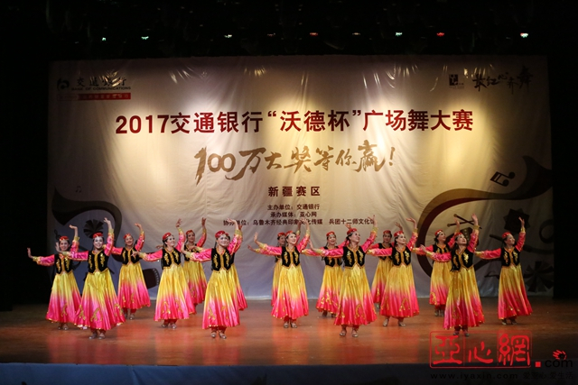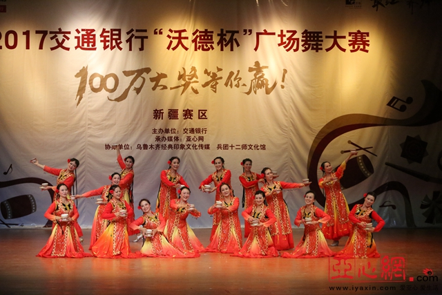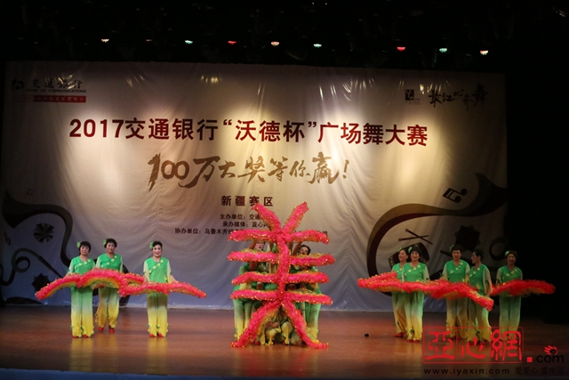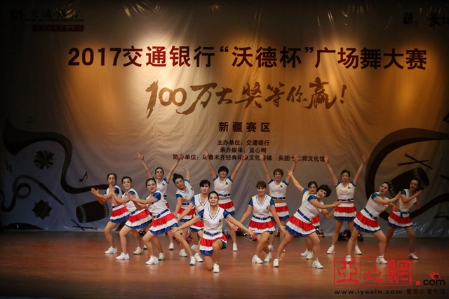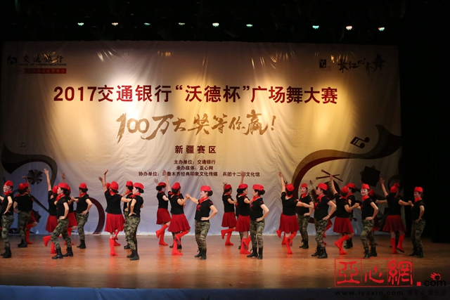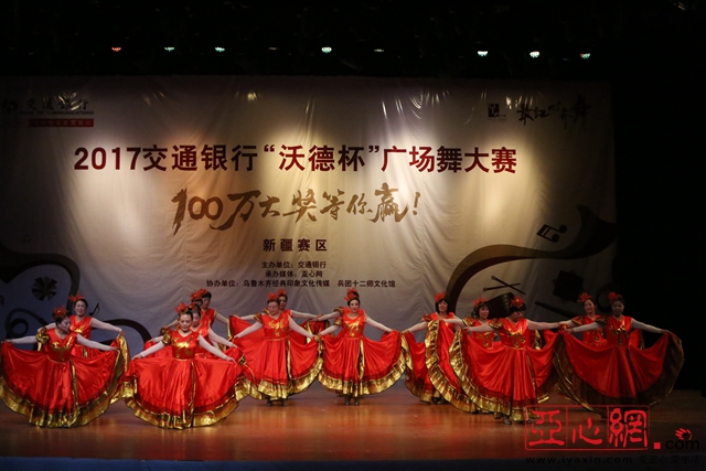 亚心网讯(文/记者 闫小芳 图/记者 吕伊晗)《江南梦》《舞动中国》《爱我中华》《新达坂城的姑娘》《大美新疆》……8月26日,“最红心齐舞”—2017年交通银行"沃德杯"广场舞大赛新疆赛区第二场海选赛在第十二师文化馆拉开帷幕,来自乌鲁木齐、昌吉等地的27支队伍以多姿多彩的以舞蹈之名,见证时代的变迁,展优美舞姿,讴歌生活的欢乐和幸福,舞出了献给美丽中国、大美新疆的热情赞歌。