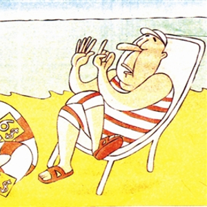 调皮的猴子扒下汽车轮胎挂在树上嘻戏,这本是动物本性的发挥,将其恶作剧策划成漫画作品则显得才智不足且少回味之妙。【匈牙利】科罗曼