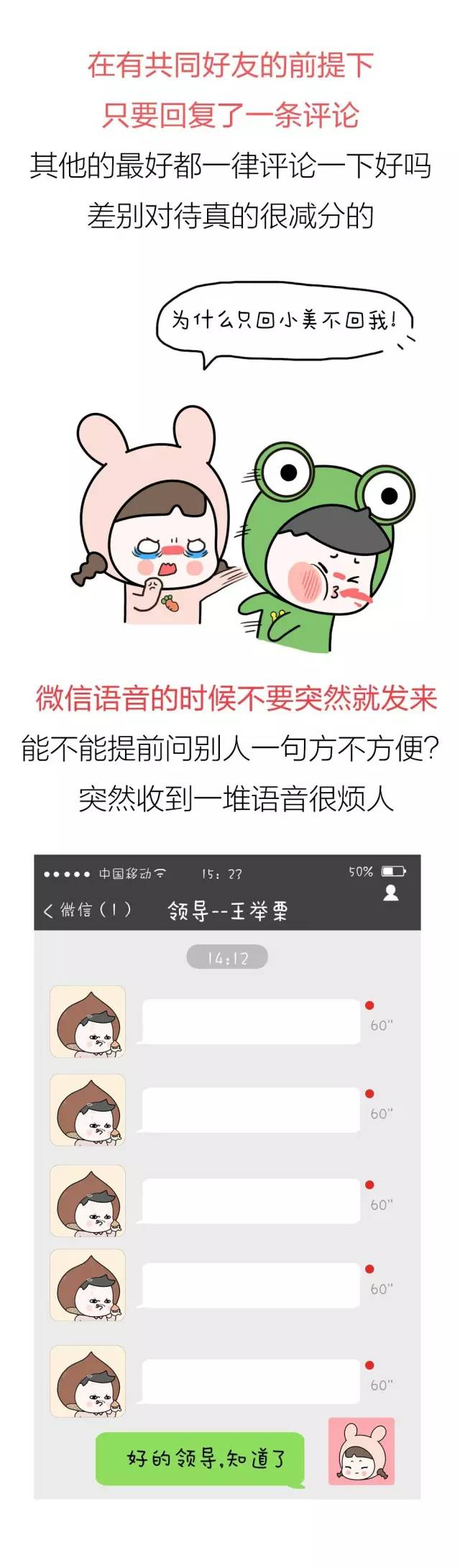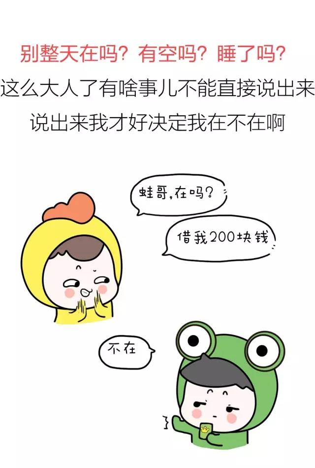 漫画 | 别整天“呵呵”、“哈哈”、“在吗?”告别尬聊,这些微信社交礼仪你应该知道 中国青年报 2017.08.2611:04 关注 图文来源于微信公众号少女兔 ID:mh4565中国青年报·中青在线出品【本文来自微信公众号“中国青年报”】