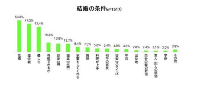 据日本CCC网站的一个调查结果显示,当日本女性动结婚想法时主要考虑三个因素: