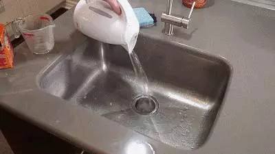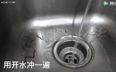 然后再向出水口不停倒入开水冲刷,至少用热水冲洗5分钟,很快就能听到“砰”的一声,堵在水管里的垃圾污垢就能流走了。