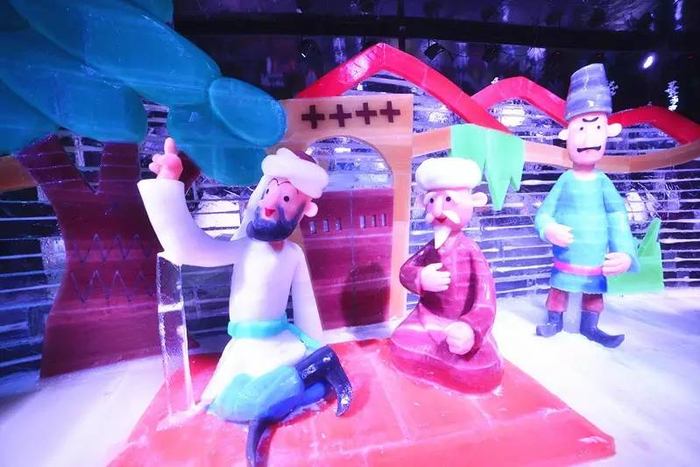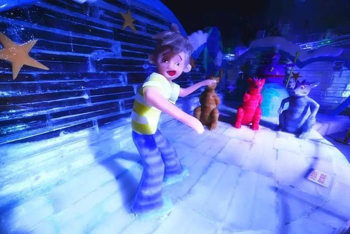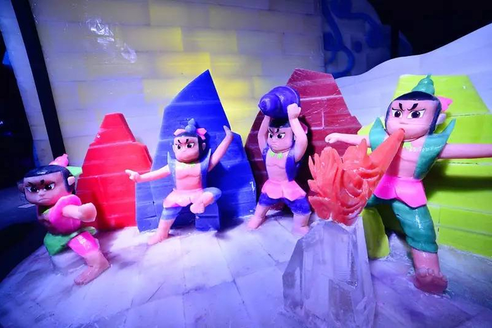 十项全能的葫芦娃、聪明勇敢的阿凡提、逃离老鼠王国不再邋遢的邋遢大王、大闹天宫的孙悟空……进门就看到一个个栩栩如生的经典卡通人物冰雕,有没有勾起你童年的回忆