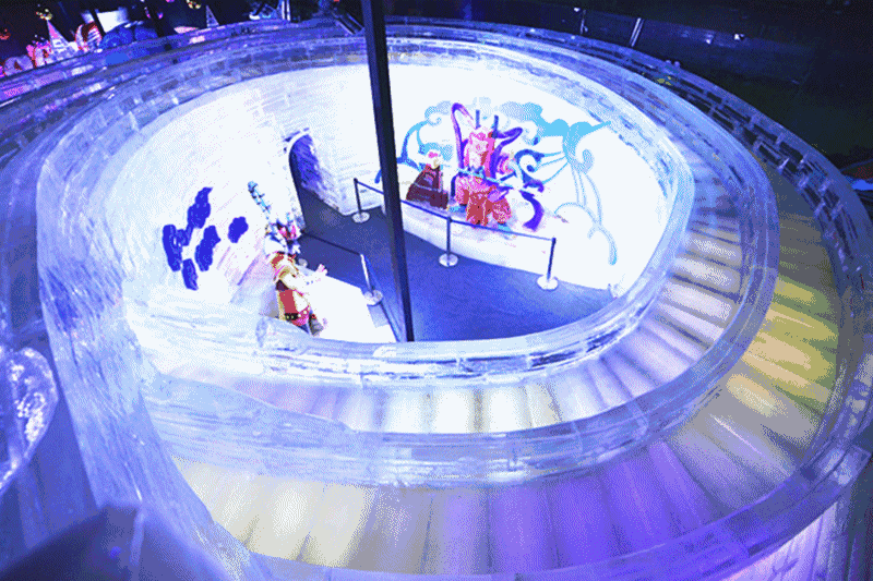展馆里有几款趣味十足的冰雕滑梯,包括位于展馆中心的8字滑梯、为小朋友量身定制的邋遢大王大靴子滑梯等,大人小孩可以一起感受冰爽的童趣哦~