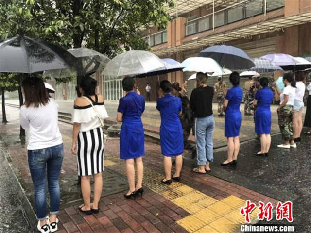 8月25日,成都暴雨突袭,成都航空旅游职业学校的老师们自发地撑起雨伞排成一排,为学生们构筑了一条百米长人墙,护送学生回寝室。