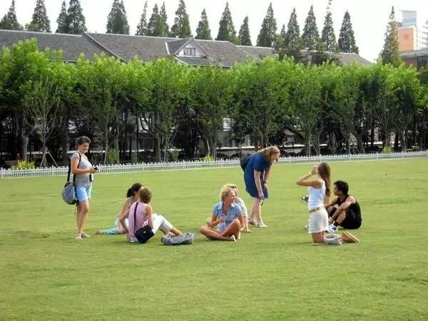 同住在本部宿舍楼的刘同学深有同感:“暑假的晚上,有游客在草地上纳凉。光华楼草坪上有很多人带小孩儿去玩儿,像育儿场所一样。”