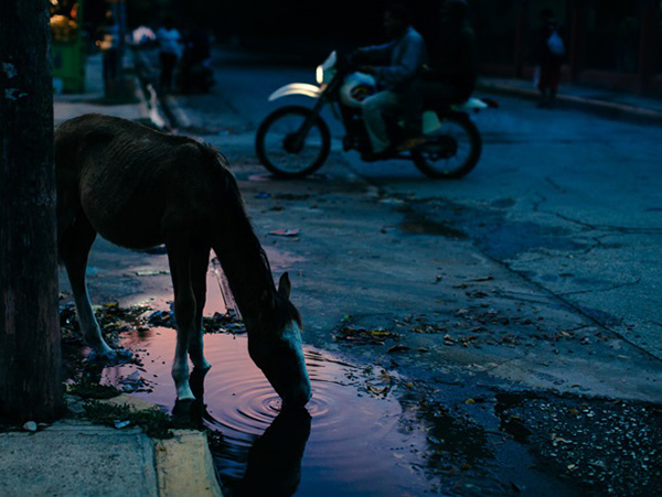 东部的山脉阻挡了海上季风,使得海地境内有两种截然不同的气候:热带气候和半干旱气候。我们途径茂盛的热带雨林,随后植被变为岩石断层带和被侵蚀的山坡,乡村生活不急不缓的节奏也转为城市工业区。街上车辆逐渐密集起来,我们的大巴驶入城中,挤进一片拥堵。汽车鸣笛声起伏,女人们却在其间轻巧地穿行,东西顶在头上;孩子们放学了,涌向家中;牲口群在路边徘徊,而小贩们则见缝插针,随处兜售甘蔗、汽车部件、内衣、电路板、电话、衣服、活禽和药剂,还支起了理发摊子。无事可做的人站在自家门口,静静看着。